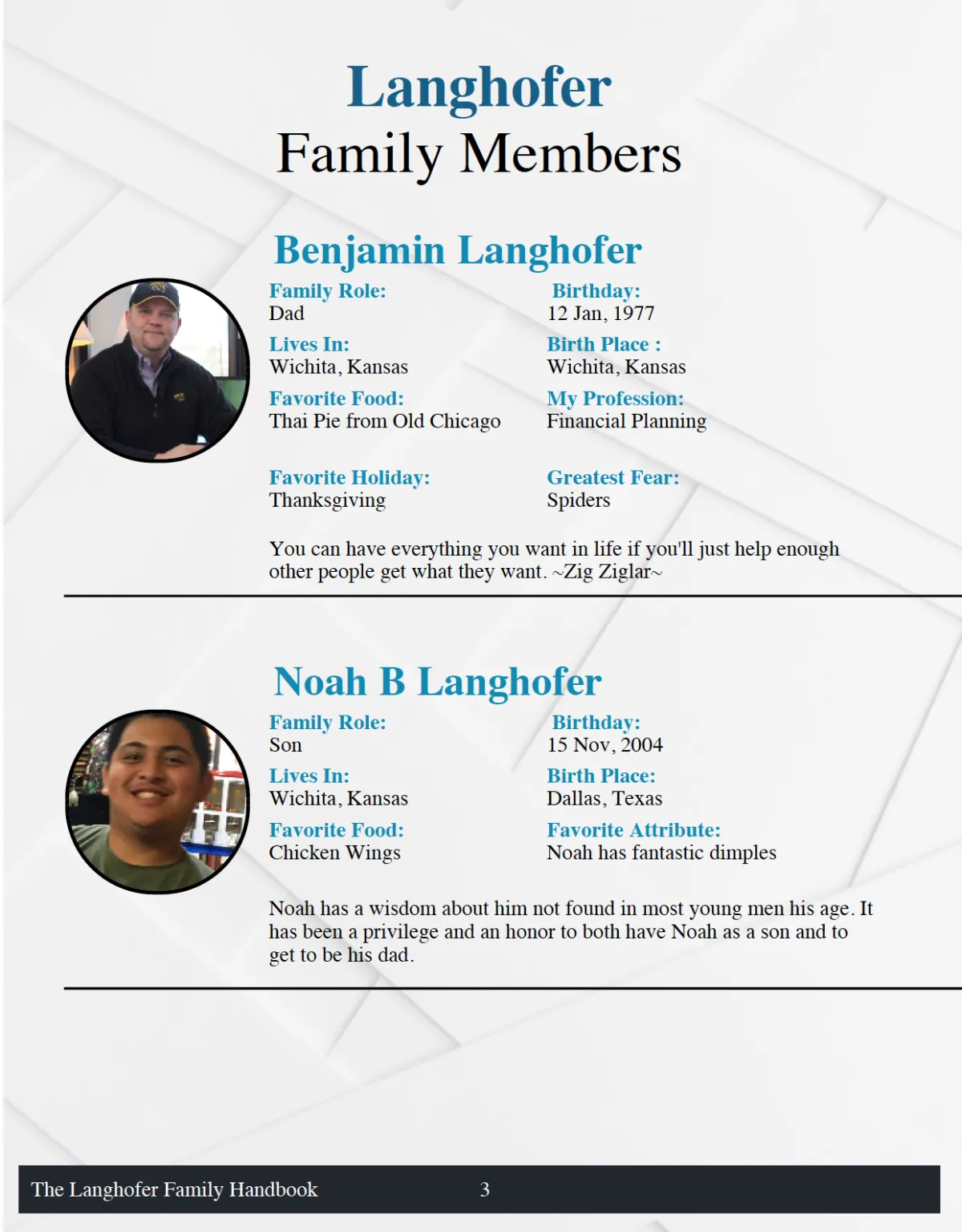 Additionally, a handbook that includes recognition of each individual family member and their role in the family as well as engaging fun facts to highlight the value they bring to the most important institution they'll ever be a part of...their own family.