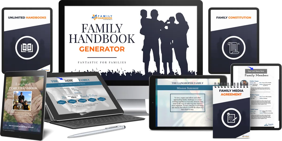 The Family Handbook Generator is an interactive tool created for moms and dads by a team of successful intentional parents, Executive Coaches, Counselors, CEOs, Entrepreneurs, and others to: