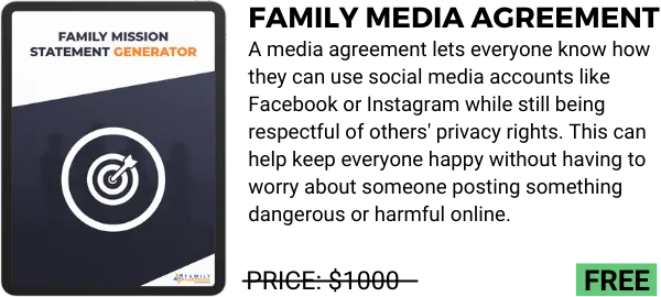 A handbook that includes fully customized FAMILY MEDIA AGREEMENTS, A CORE VALUES STATEMENT, A FAMILY MISSION STATEMENT, A FAMILY CONSTITUTION, A FAMILY CODE OF CONDUCT and other valuable tools to reinforce that which you believe to be most important to your family.