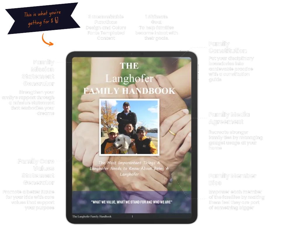 Create Your Family Handbook Access, Customize and download your Family Tools and Use Them. If You Don't Feel It Was Worth Every Penny...